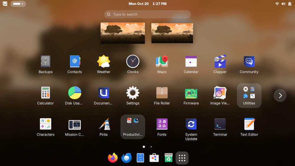 After updating the system post-install, I took a look at what software installed by default with the larger-than-usual ISO. There was the usual family of Gnome tools available, as well as the Firefox web browser and the Thunderbird e-mail client.