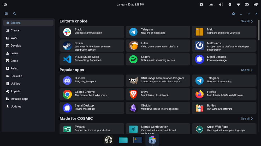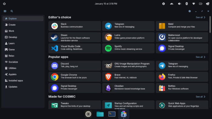In Origami’s defense, the lack of software is by design, since the philosophy behind the distro itself is for users to take their own initiative and design their own personal workflows. Hence, the Cosmic Store gets a phenomenal workout from the start, installing some basic software onto the distro.