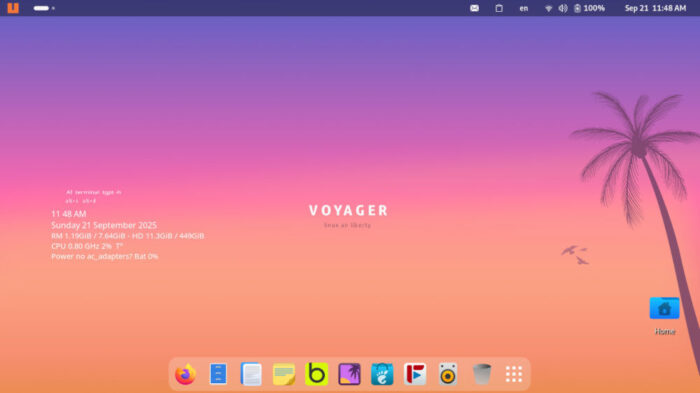 They didn’t stop there. Voyager’s default installation also included such standards as the Firefox browser, Thunderbird email client, as well as the LibreOffice suite. Also included: GIMP graphics editor, VLC media player, and the Rhythmbox audio player, among others.