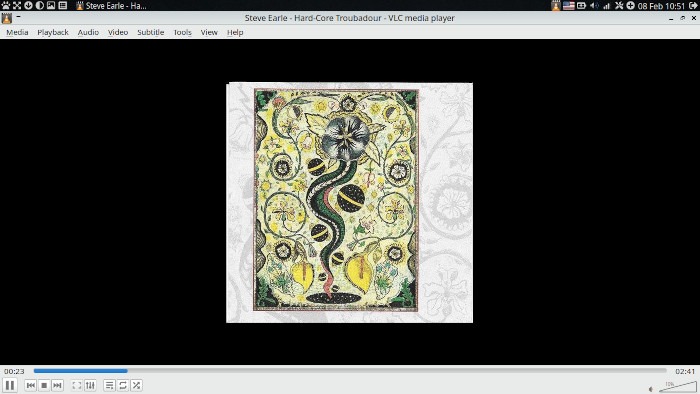 Listening to a little Steve Earle during the day on Lilidog Linux.