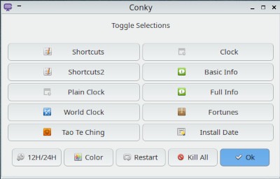 The Conky Chooser offers preset Conky version in Lilidog Linux.