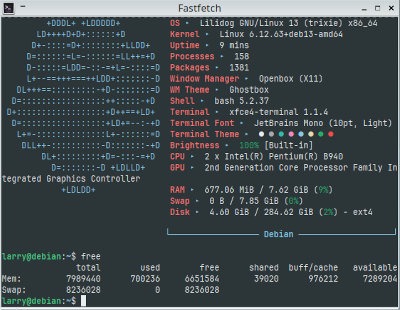 Fastfetch, one of the many tools included with Lilidog Linux, is a command-line tool displaying detailed information about your system.