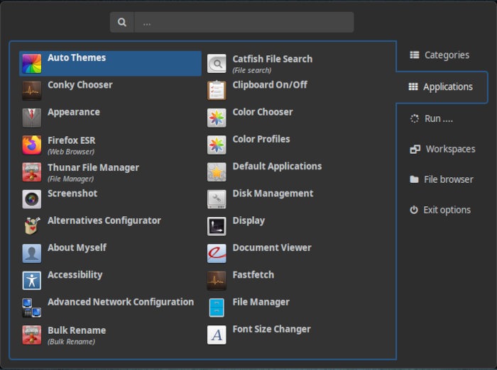 In addition to the plethora of Openbox-related tools for adapting the DE, the distro provides the usual fare of included software in the install. This include system associated apps such as the tint2 desktop panel, the Thunar file manager, and the xfce4-terminal. There’s also standard fare apps, like Firefox ESR, LibreOffice, Catfish File Search, GParted, the Geany text editor, and more. It also includes unique tools like the Fastfetch command line tool, the Newsboat RSS reader, the Pragha music player, and the SM media player.