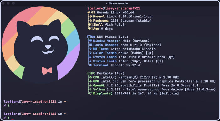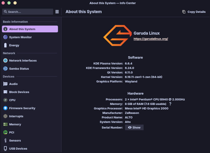 The Konsole Terminal in Garuda Linux provides a wealth of information.