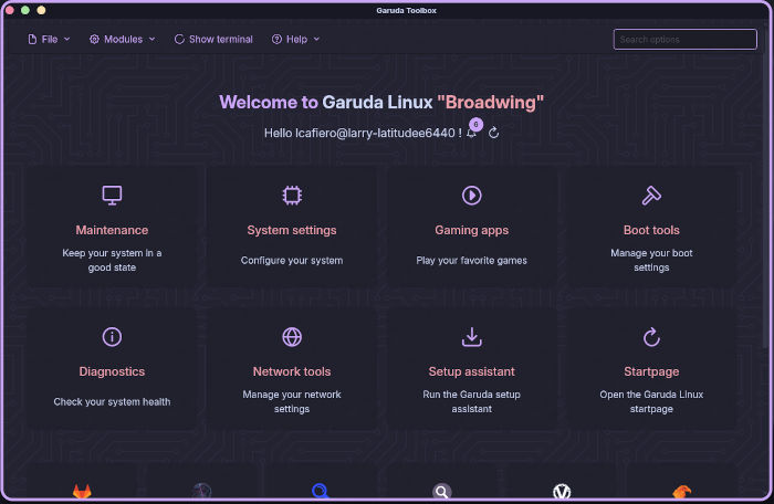 The Garuda Linux Toolbox provides the user with a wide variety of assistance.