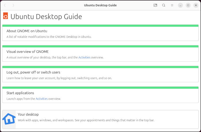 The reboot brought me to the new Gnome 50 desktop environment, with a set of icons listed vertically down the left side, and a horizontal panel along the top, with the time and date in the center and a group of icons on the right. After the customary first update, a welcome window accompanied the initial boot of Resolute Raccoon, offering users some further tweaking options before starting on their new Ubuntu journey.